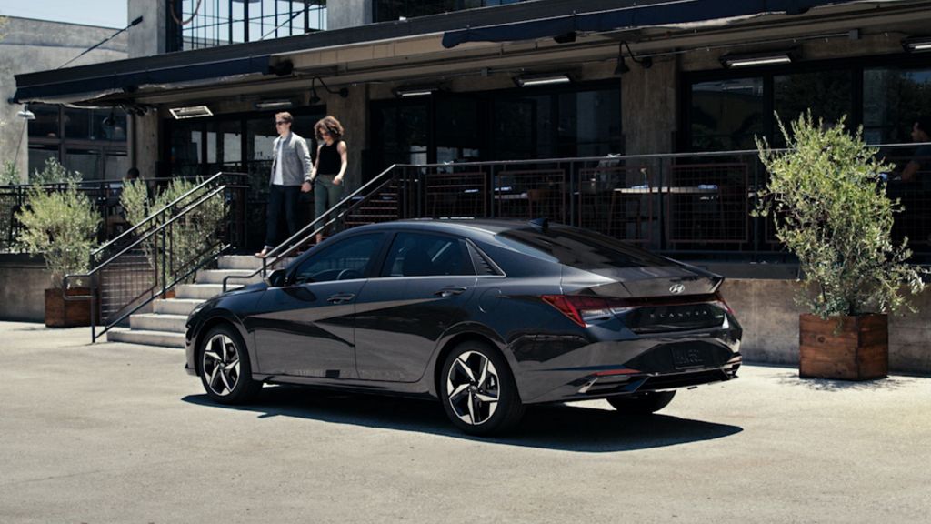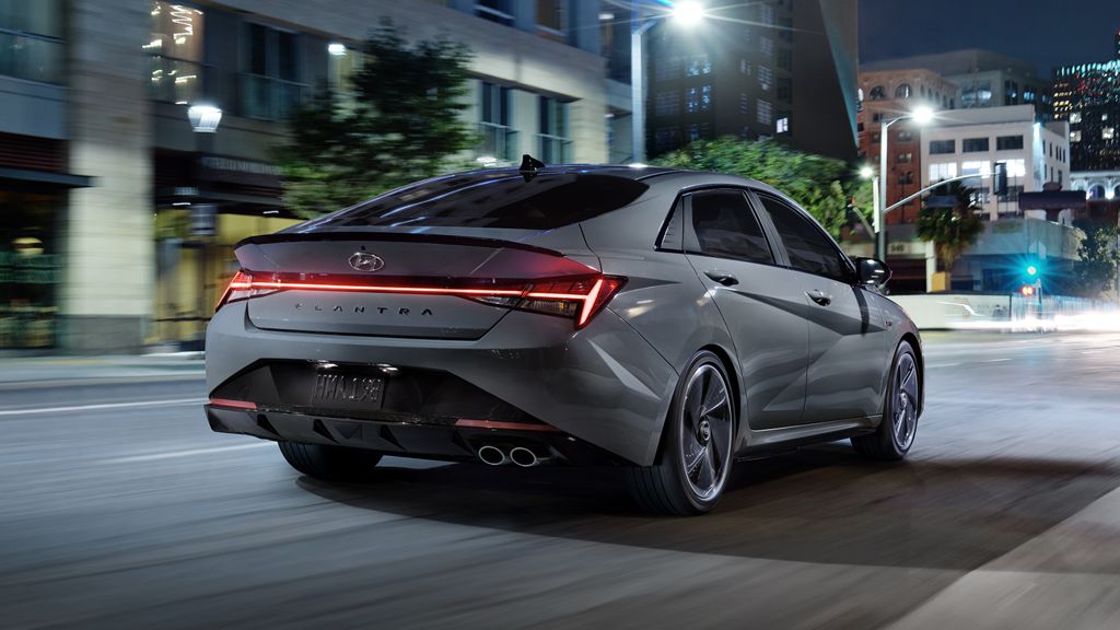 You can get the 2023 Hyundai Elantra in four trim levels: SE, SEL, Limited, and N Line. On the SE, you get automatic headlight control, a black front grille, and dual fold-away power body-color side mirrors. The SEL adds a hands-free smart trunk and 16-inch alloy wheels. The Limited comes with 18-inch alloy wheels, all-season performance tires, LED headlights, and a dark chrome front grille. You get exclusive N Line fascia, bumpers, and grille features with the N Line. You'll also get chrome twin exhaust and black trim.