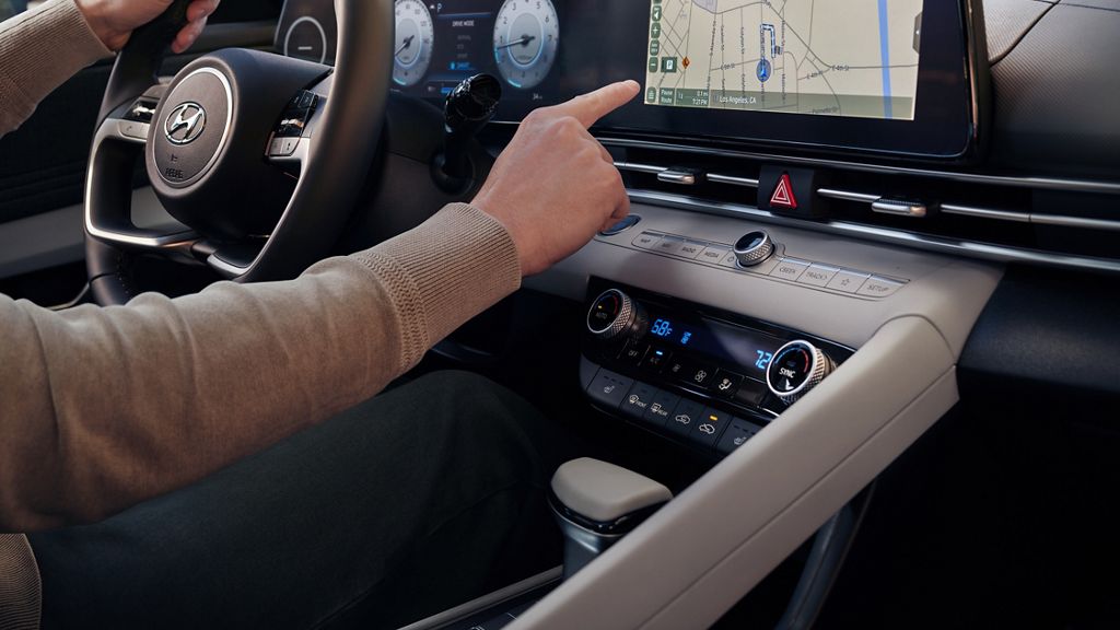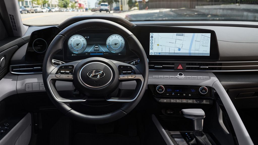 The 2023 Hyundai Elantra is a compact car with an eye-catching design, sleek lines, and a bold grille, making drivers everywhere pay attention. Inside you'll find premium seating and comfort along with a series of advanced technology and infotainment options. Classic Hyundai safety features will help protect you and your passengers on the road. If you're in the market for your next vehicle, here are the top features of the 2023 Hyundai Elantra.