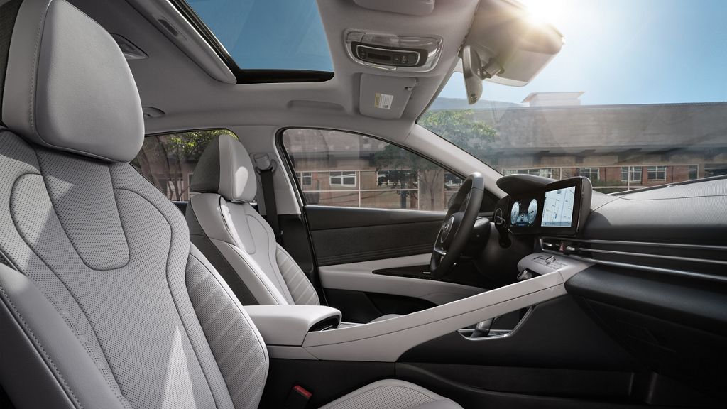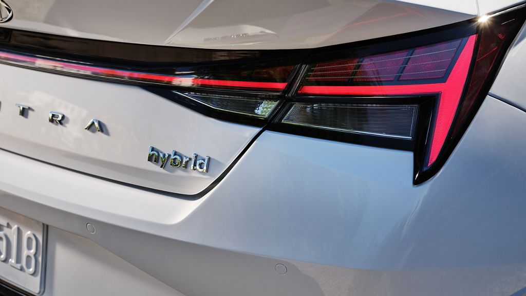 The entry-level Elantra Hybrid is the Blue. It comes with 16-inch alloy wheels, automatic projector headlights, and a hands-free trunk lid. A step up to the Limited adds 17-inch alloy wheels, LED headlights, heated exterior side mirrors with integrated turn signals, and a sunroof. One small change for the 2023 model is that the taillights are now a combination of LED and bulb instead of full LED. Unlike many other hybrid models, the Elantra Hybrid looks almost identical to the gas-powered version.