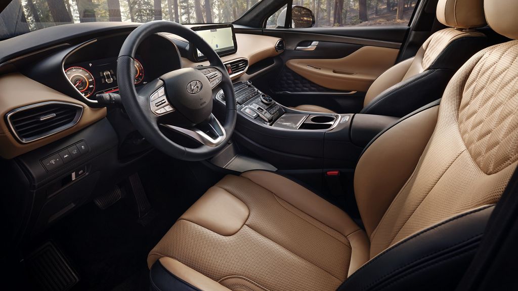The 2023 Hyundai Santa Fe interior is cozy, relaxing, and loaded with luxurious features. The seats are well-cushioned and supportive, ideal for daily commutes or weekend road trips with the family.