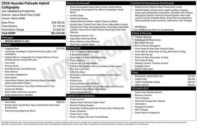 2026 Hyundai Palisade Hybrid Calligraphy