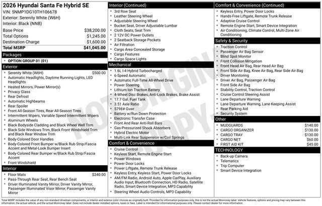 2026 Hyundai Santa Fe Hybrid SE