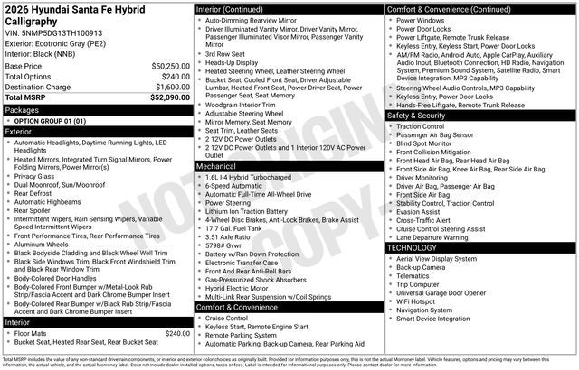 2026 Hyundai Santa Fe Hybrid Calligraphy