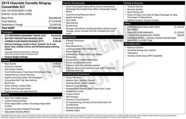 - Wheels, Z51-style 5-split spoke, Silver-painted aluminum 19" x 8.5" (48.3 cm x 21.6 cm) front and 20" x 10" (50.8 cm x 25.4 cm) rear