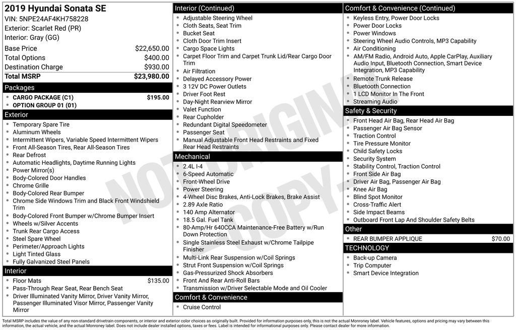 2019 Hyundai Sonata SE