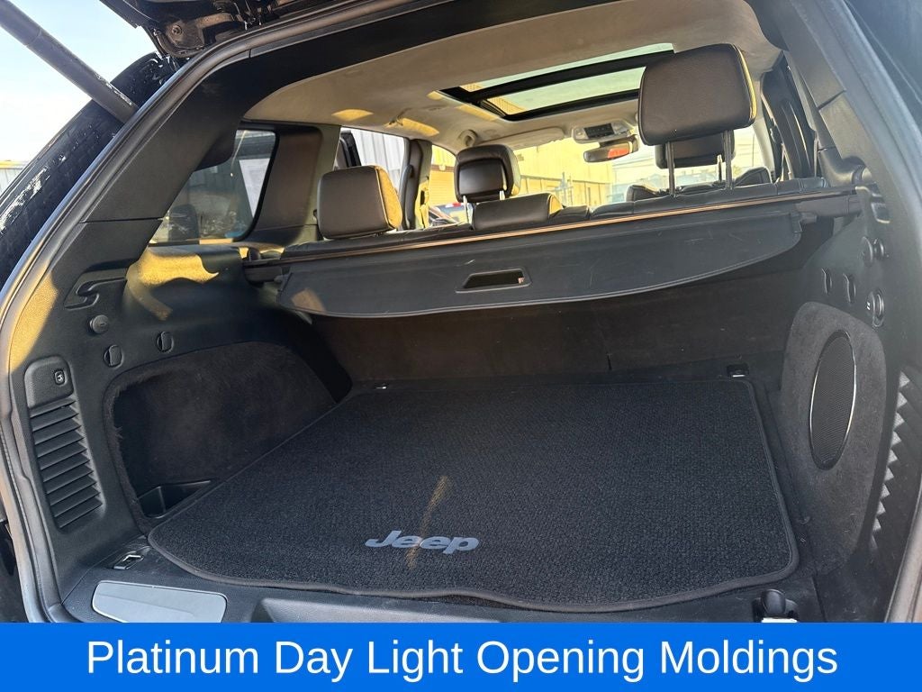 The Platinum Series Group elevates this Grand Cherokee to new heights, adding premium touches like a gloss black grille, body-color exterior accents, and stunning 20-inch platinum aluminum wheels. The attention to detail is evident in every aspect of this vehicle, from the sleek exterior design to the meticulously crafted interior.