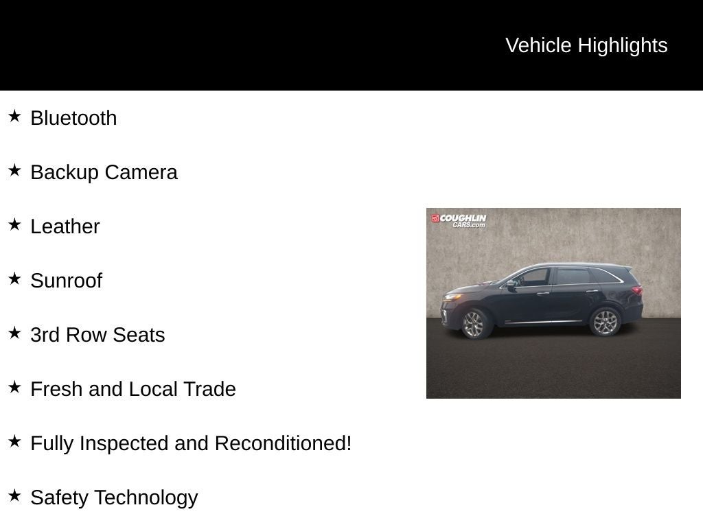 With its impressive capabilities, luxurious amenities, and cutting-edge safety features, this 2019 Kia Sorento SX Limited is a must-see for any discerning SUV buyer. Come experience the difference at Coughlin Kia of Lewis Center, where our knowledgeable team is ready to help you find your perfect vehicle.