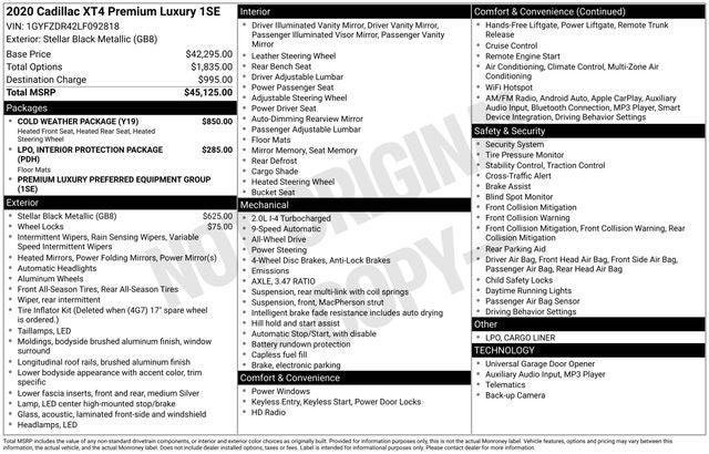 2020 Cadillac XT4 AWD Premium Luxury