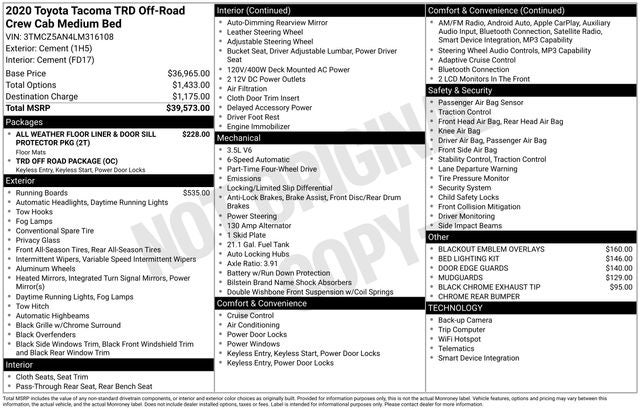 - Vehicle Name: Toyota Tacoma 4WD
