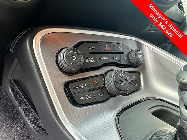 3.09 Rear Axle Ratio, 392 Fender Decal, Adaptive Damping Suspension, Black Satin Painted Hood, Brembo 6-Pot Fixed Front Caliper Brakes, Door Trim Panel w/Ambient Lighting, Flat-Bottom Steering Wheel, Functional Hood Scoop, Gloss Black I/P Cluster Trim Rings, GPS Navigation, Heated Steering Wheel, Houndstooth Cloth Performance Seats, Illuminated Air-Catcher Headlamps, Mopar Bright Door Sills, MOPAR Cold Air Intake System, Mopar Interior Appearance Group, MOPAR Premium Floor Mats w/Logo, Performance Shift Indicator, Plus Package, Power Tilt/Telescope Steering Column, Premium-Stitched Dash Panel, Quick Order Package 24N R/T Scat Pack Widebody, Radio/Driver Seat/Mirrors Memory, Satin Wrap Roof/Decklid, T/A Bodyside Graphic, T/A Package, T/A Spoiler Decal, Trunk Mat w/Logo, Wheels: 20 x 11.0 Devil's Rim Aluminum, White Face Instrument Cluster, Widebody Competition Suspension, Widebody Fender Flares.