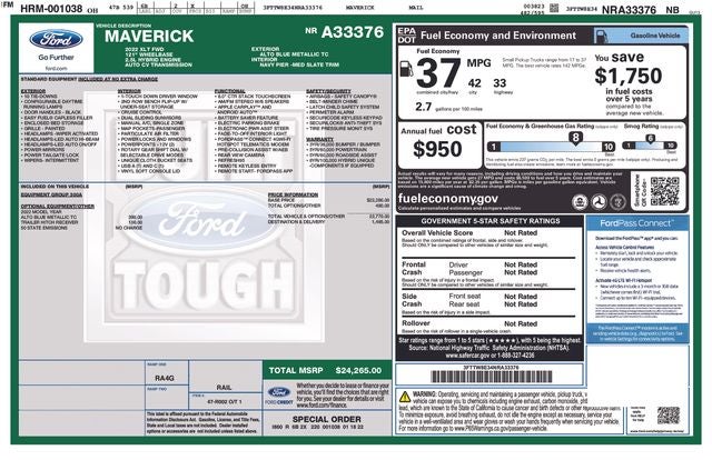 - - - THIS 2022 FORD MAVERICK HYBRID IS A ONE OWNER LOCAL TRADE WITH A PERFECT HISTORY REPORT AND THE REMAINDER OF THE 5 YEAR 60,000 MILE FACTORY WARRANTY !!!