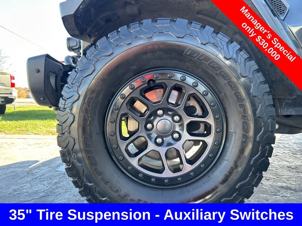 The Xtreme Recon 35 Tire Package elevates this Wrangler's off-road capabilities with beefy tires, a Dana M210 wide HD tube front axle, and a 4.56 rear axle ratio. The LED Lighting Group ensures you'll always have a clear view, while the Trailer Tow & HD Electrical Group makes hauling your toys a breeze.