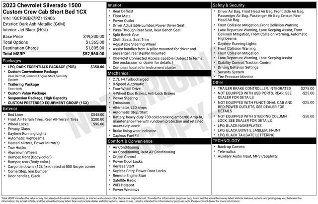 - Custom Convenience Package includes (BTV) Remote Start with (UTJ) content theft alarm, (C49) rear-window defogger, (UF2) bed LED cargo area lighting and (QT5) EZ Lift power lock and release tailgate (Included and only available with (PDX) Custom Value Package.)