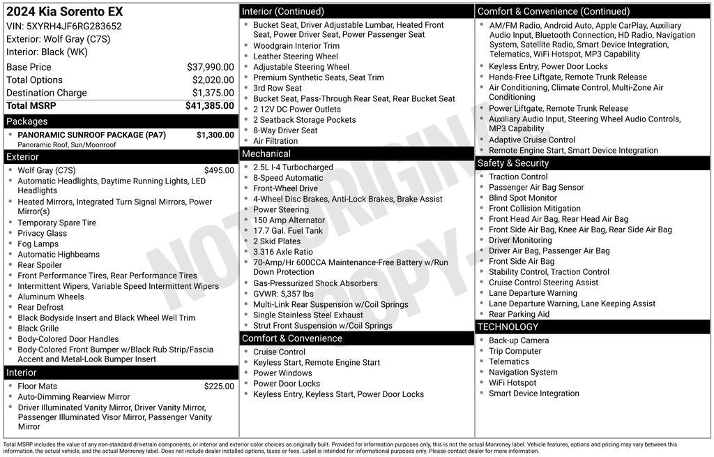 Equipped with Panoramic Sunroof Package (LED Interior Lighting and Panoramic Power Sunroof w/Power Sunshade), 3.316 Axle Ratio, 3rd row seats: split-bench, 4-Wheel Disc Brakes, 6 Speakers, ABS brakes, Air Conditioning, Alloy wheels, AM/FM radio: SiriusXM, Apple CarPlay & Android Auto, Auto High-beam Headlights, Auto-dimming Rear-View mirror, Automatic temperature control, Brake assist, Bumpers: body-color, Carpeted Floor Mats, Delay-off headlights, Driver door bin, Driver vanity mirror, Dual front impact airbags, Dual front side impact airbags, Electronic Stability Control, Emergency communication system: 911 Connect, Exterior Parking Camera Rear, Four wheel independent suspension, Front anti-roll bar, Front Bucket Seats, Front Center Armrest, Front dual zone A/C, Front fog lights, Front reading lights, Fully automatic headlights, Heated door mirrors, Heated Front Bucket Seats, Heated front seats, Illuminated entry, Knee airbag, Leather Shift Knob, Leather steering wheel, Low tire pressure warning, Navigation System, Occupant sensing airbag, Outside temperature display, Overhead airbag, Overhead console, Panic alarm, Passenger door bin, Passenger vanity mirror, Power door mirrors, Power driver seat, Power Liftgate, Power passenger seat, Power steering, Power windows, Radio data system, Radio: AM/FM Audio System, Rear anti-roll bar, Rear reading lights, Rear side impact airbag, Rear window defroster, Rear window wiper, Remote keyless entry, Security system, Smart Key w/ Push Button and Remote Start, Speed control, Speed-sensing steering, Split folding rear seat, Spoiler, Steering wheel mounted audio controls, SynTex Artificial Leather Seat Trim, Tachometer, Telescoping steering wheel, Tilt steering wheel, Traction control, Trip computer, Turn signal indicator mirrors, Variably intermittent wipers, and Wheels: 8.5J x 20 Gloss Black Alloy.