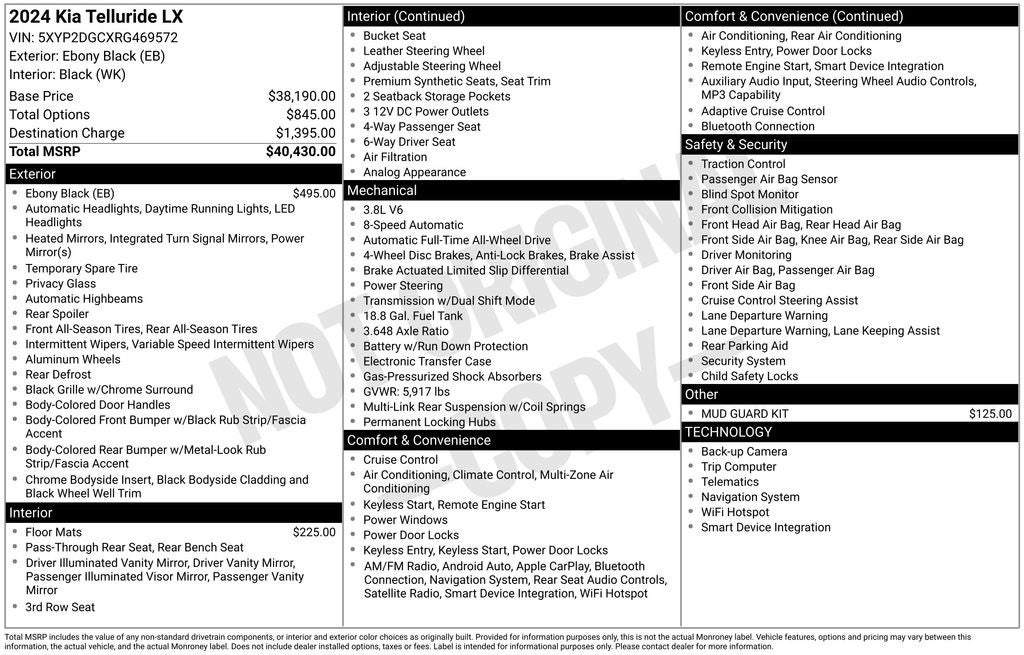 This 2024 Kia Telluride LX is a remarkable SUV that offers an exceptional blend of style, capability, and convenience. With its sleek black exterior, this Telluride commands attention on the road, while its spacious interior and versatile features make it the perfect choice for your growing family.