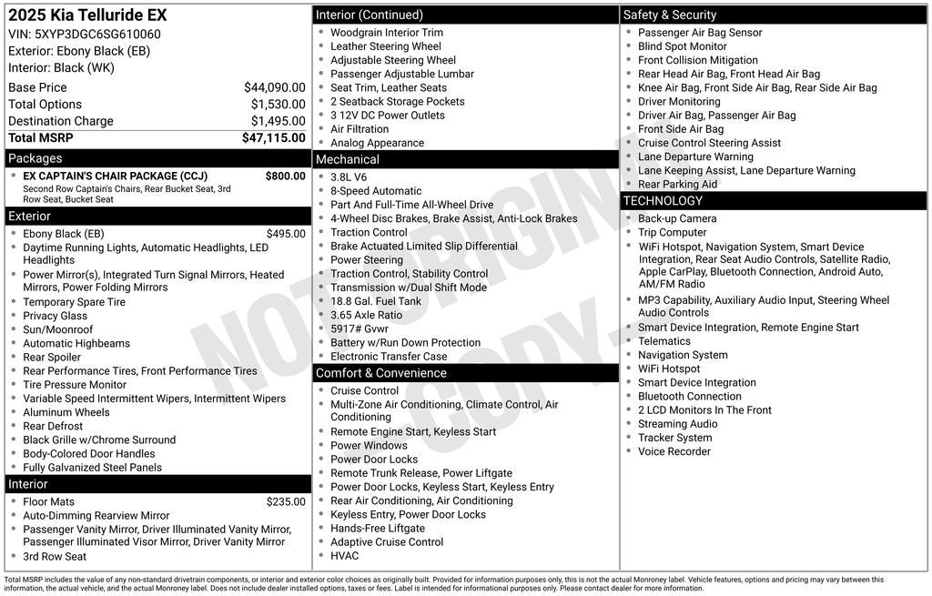 This 2025 Kia Telluride EX is a premium SUV packed with desirable features that will elevate your driving experience. Boasting a striking Black exterior and a spacious, well-appointed cabin, this Telluride is a true standout in its class.